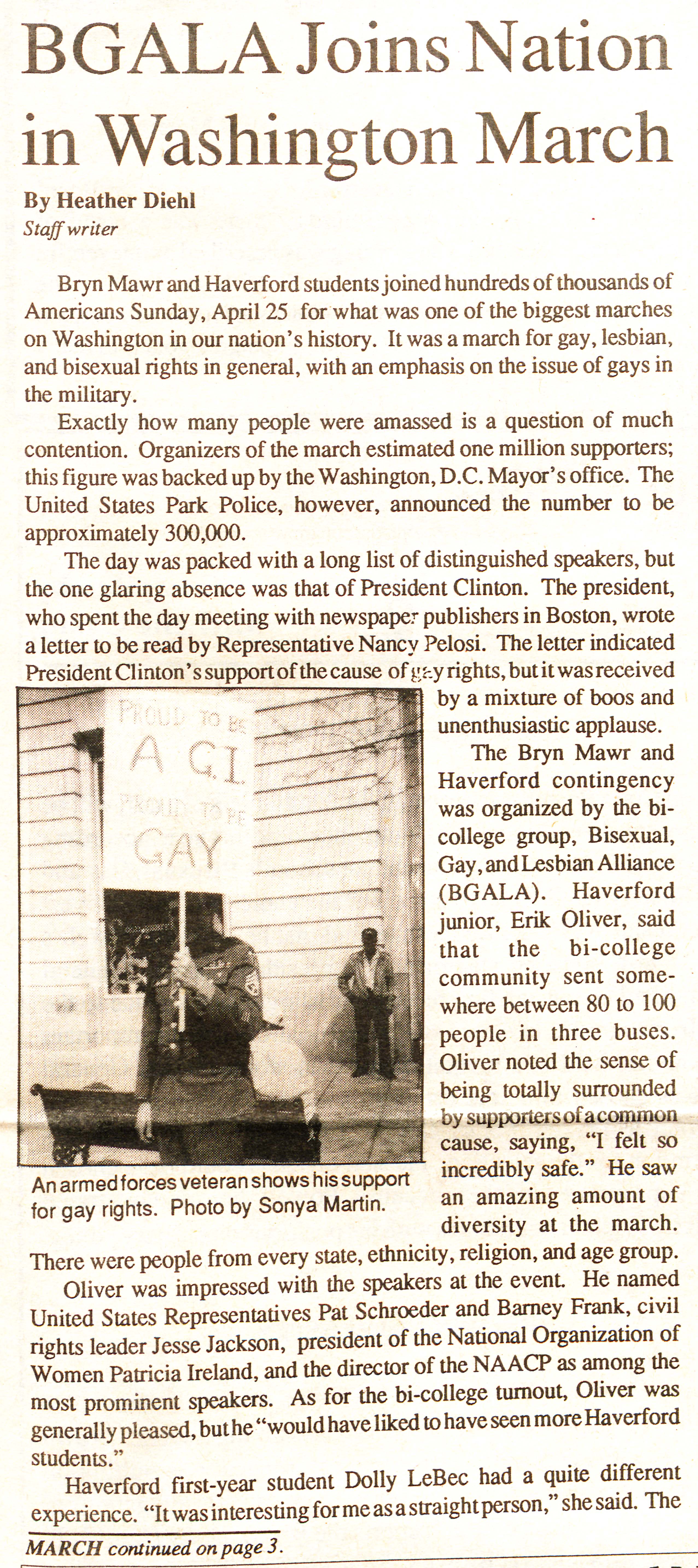 Coverage of BGALA's involvement in the 1993 March on Washington.