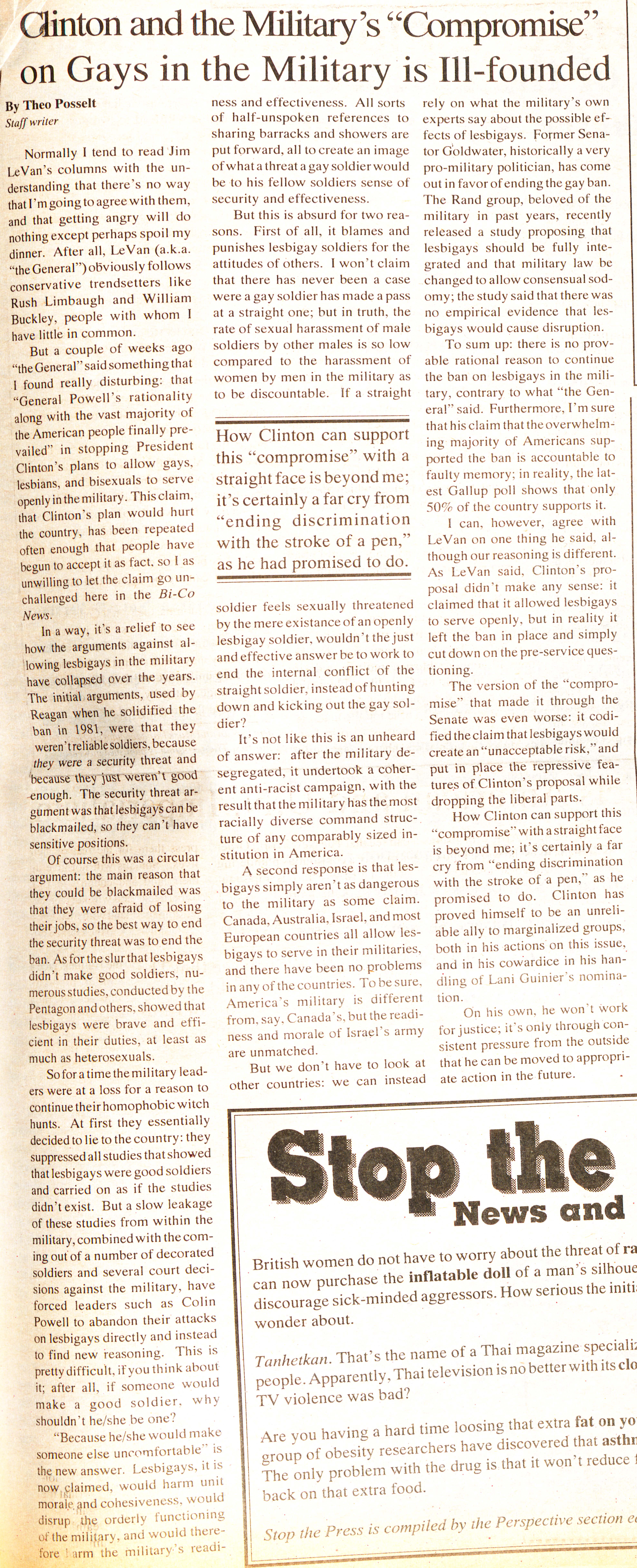 “Clinton and the Military's "Compromise" on Gays in the Military is Ill-founded,” That Which is Renamed, but Always Remains: An Archival Representation of Queer History at Haverford College, accessed December 13, 2025, https://ds-omeka.haverford.edu/remainhaverford/items/show/1319.
