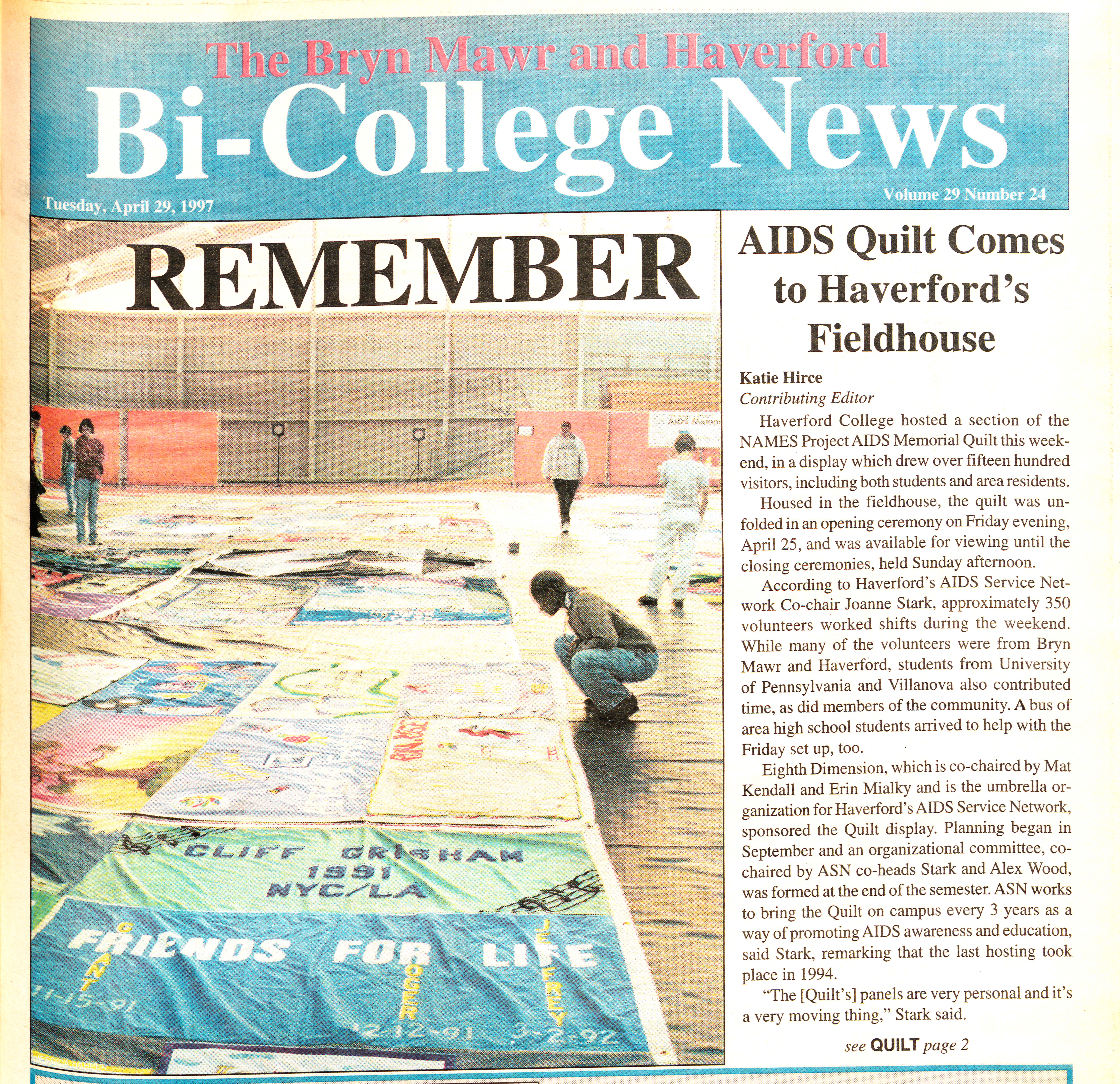 “AIDS Quilt Comes to Haverford's Fieldhouse ,” That Which is Renamed, but Always Remains: An Archival Representation of Queer History at Haverford College, accessed December 13, 2025, https://ds-omeka.haverford.edu/remainhaverford/items/show/1352.