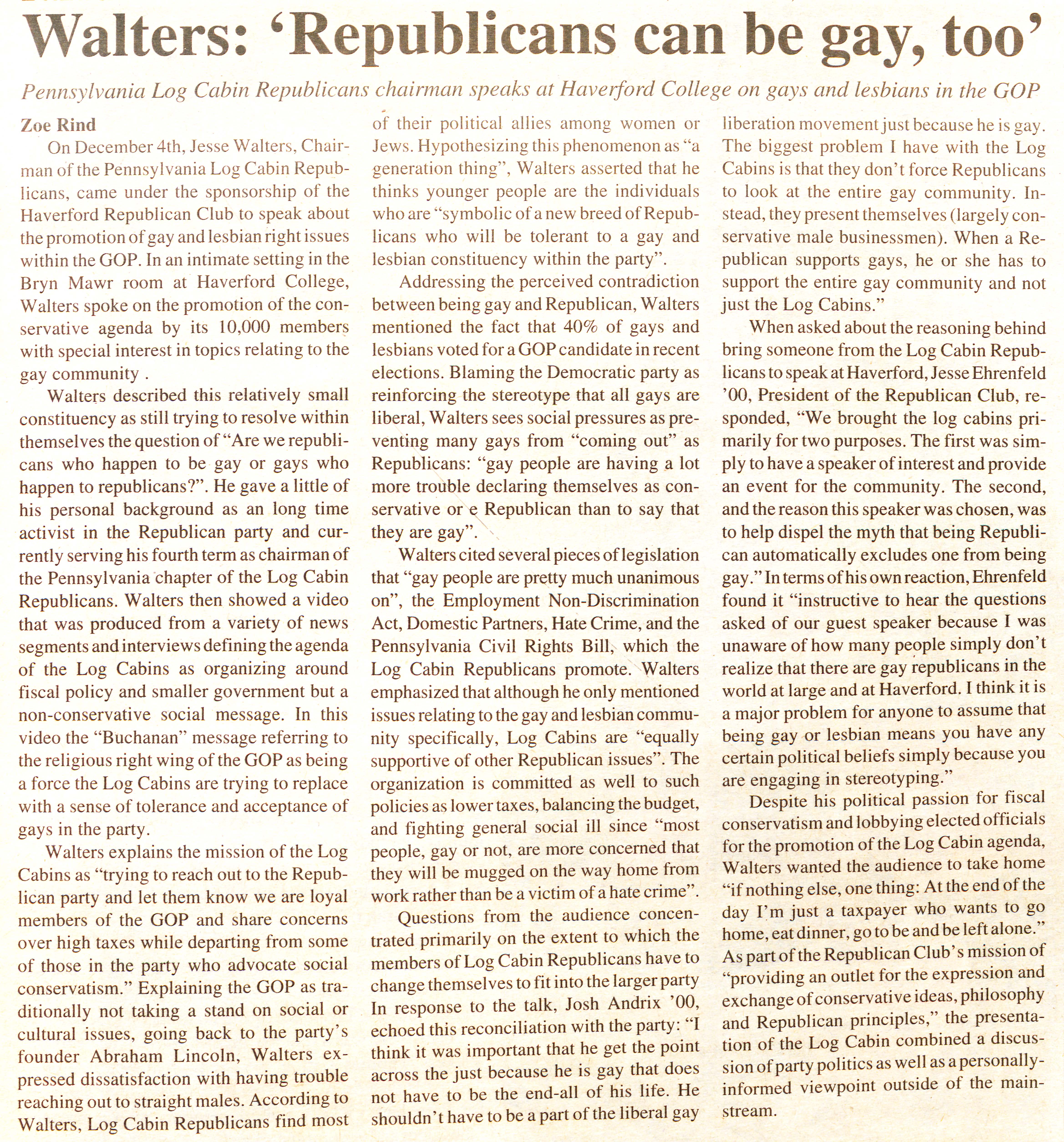 “Walters: 'Republicans can be gay,” That Which is Renamed, but Always Remains: An Archival Representation of Queer History at Haverford College, accessed December 13, 2025, https://ds-omeka.haverford.edu/remainhaverford/items/show/1357.