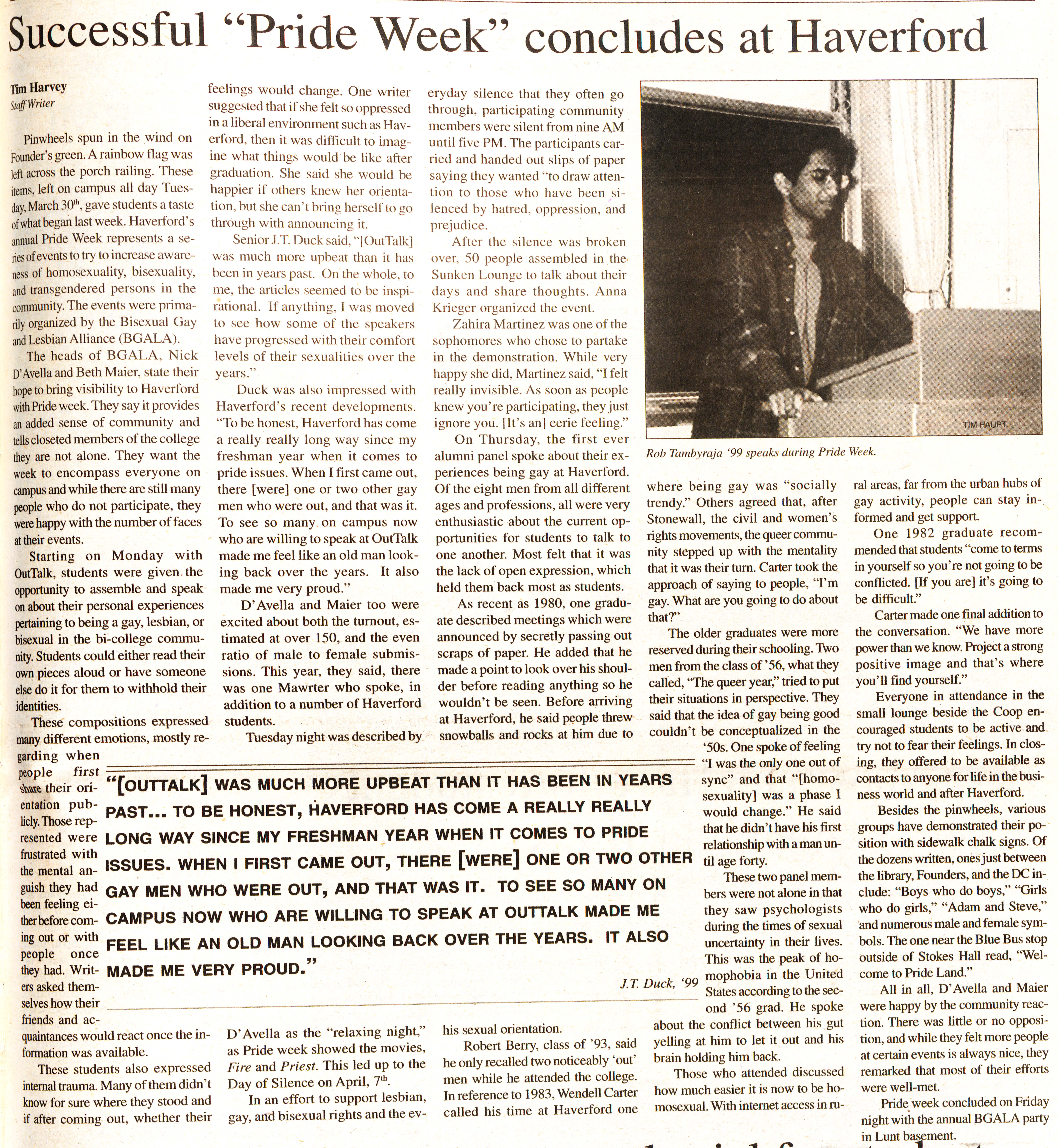 “Successful "Pride Week" concludes at Haverford,” That Which is Renamed, but Always Remains: An Archival Representation of Queer History at Haverford College, accessed December 13, 2025, https://ds-omeka.haverford.edu/remainhaverford/items/show/1386.