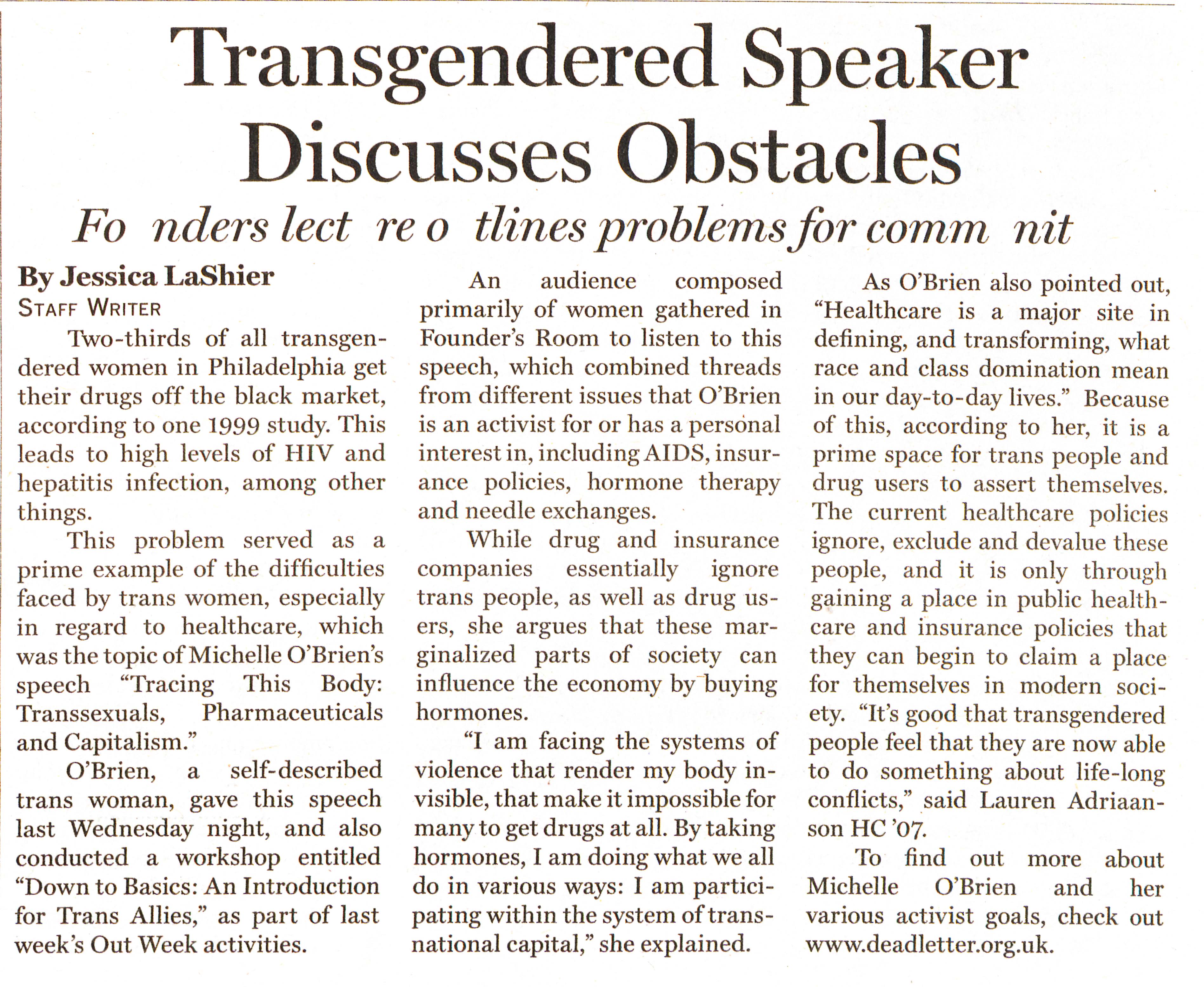 “Transgendered Speaker Discusses Obstacles,” That Which is Renamed, but Always Remains: An Archival Representation of Queer History at Haverford College, accessed December 13, 2025, https://ds-omeka.haverford.edu/remainhaverford/items/show/1404.
